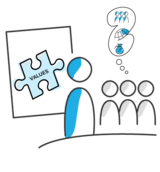 Für die wertorientierte Entwicklung in unseren Workshops bieten wir praxisnahe Materialien zur Reflexion über Werte und Grundannahmen. Diese speziell entwickelten Tools laden zur gemeinsamen Auseinandersetzung und zum offenen Austausch ein. Sie fördern in unseren moderierten Workshops den Dialog über persönliche und organisationale Überzeugungen und unterstützen so nachhaltige Erkenntnisse und gemeinsames Verständnis.
