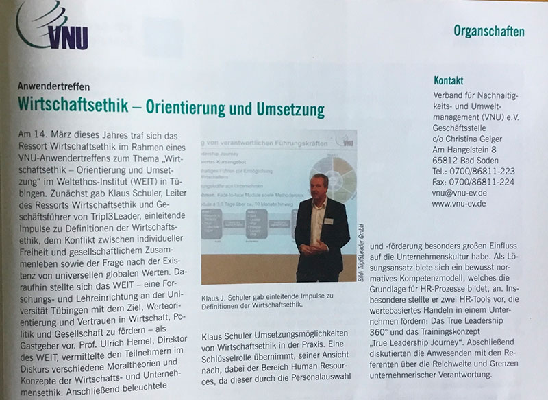 Am 14. März traf sich das Ressort Wirtschaftsethik zum VNU Anwendertreffen im Weltethos-Institut (WEIT) in Tübingen, welches unter dem Titel „Wirtschaftsethik – Orientierung und Umsetzung“ stand.